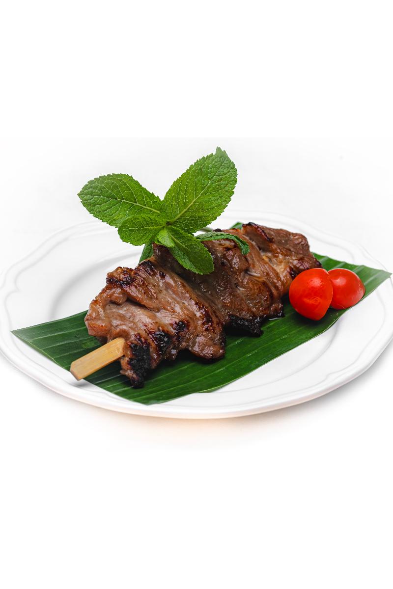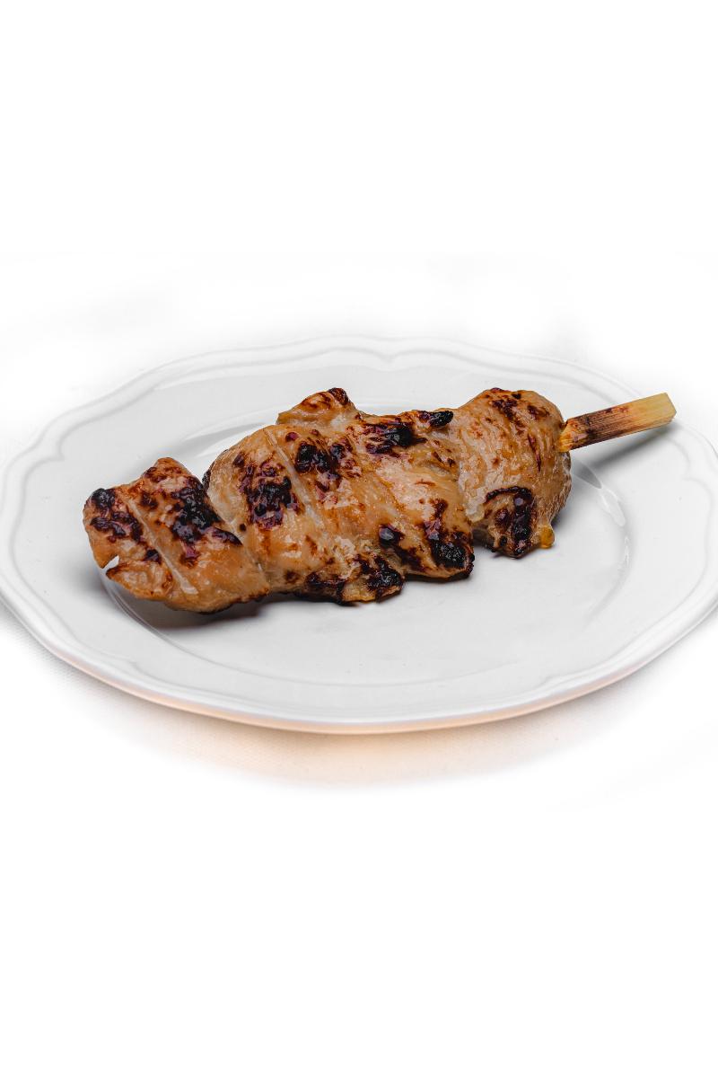 Grillet kyllingspyd eller svinespyd : Allergener: gluten, kokosmelk, pepper, soya, spor av skalldyr og østers